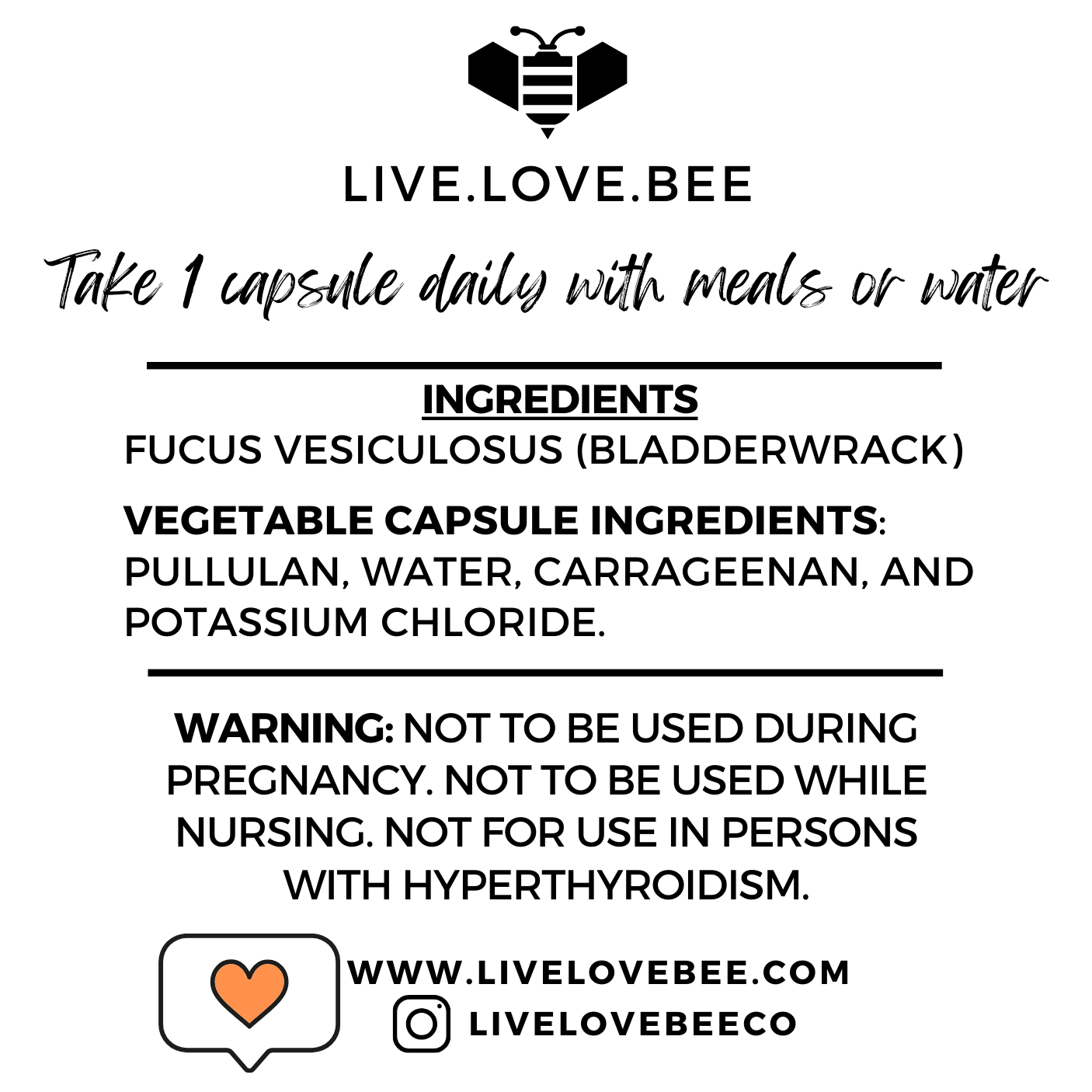 Ingredients: Bladderwrack. Vegetable Capsule Ingredients: Pullulan, water, carrageenan, and potassium chloride