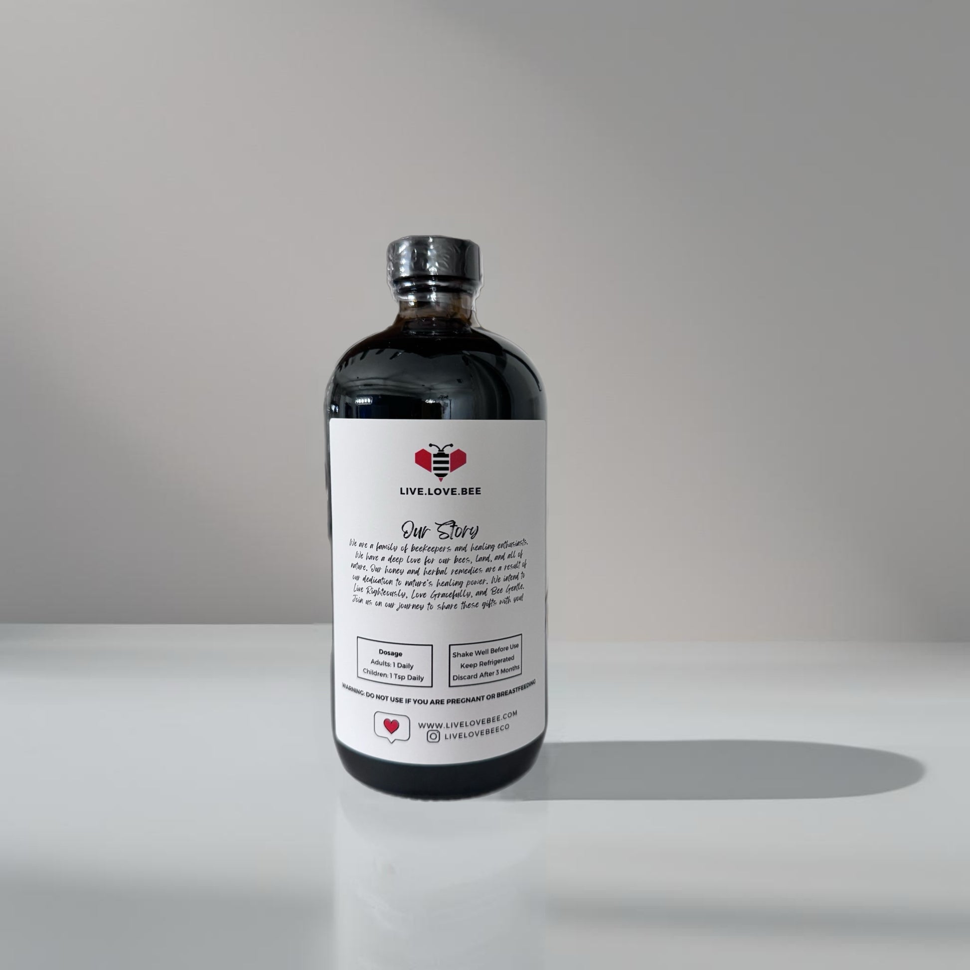 Introducing Infused Elderberry Syrup. Infused with Local Raw Honey and beneficial herbs - a natural powerhouse for your health! Packed with antioxidant-rich elderberries, this syrup helps boost your immune system, combat colds, and reduce inflammation. Our locally sourced raw honey adds a sweet touch while offering allergy relief and aiding digestion. Elevate your wellness routine with a spoonful of this delicious and nutritious syrup today!